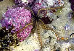 Reference page. [as 'Ophiothrix angulata p. 514–515] - Hernández-Díaz YQ, Solis F, Beltrán-López RG, Benítez HA, Díaz-Jaimes P, Paulay G. 2023. Integrative species delimitation in the common ophiuroid Ophiothrix angulata (Echinodermata: Ophiuroidea): insights from COI, ITS2, arm coloration, and geometric morphometrics. PeerJ. 11:e15655 DOI: 10.7717/peerj.15655