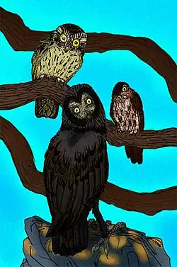 - Howard, H. 1933: A new species of owl from the Pleistocene of Rancho La Brea, California. The Condor 35: 66–69. DOI: 10.2307/1363650