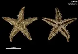 - Fisher, W.K. 1940. Asteroidea. Discovery Reports. 20: 69–306. BHL Reference page. [original description of Paralophaster p. 175–176] [original description of Myoraster p. 181]