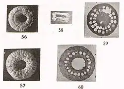- Morellet, L. & Morellet, J. 1922. Nouvelle contribution a l'étude des Dasycladacées Tertiaires. Mémoires de la Société Géologique de France. Paléontologie 25(2): 1–35. BHL Reference page.