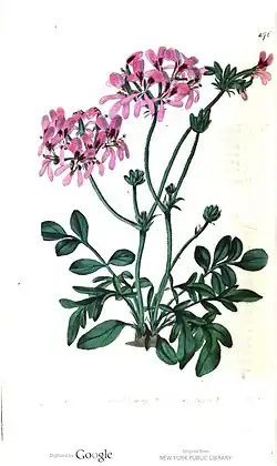 - Formula hybridae: Pelargonium pinnatum (L.) L'Hér. × Pelargonium reticulatum DC.