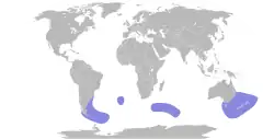 Pelecanoides urinatrix — distribution map