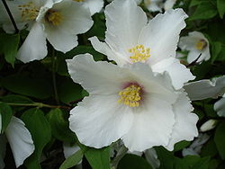 Philadelphus coulteri × Philadelphus × lemoinei (Philadelphus coronarius × Philadelphus microphyllus)