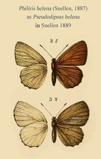 - Pseudodipsas helena Snellen, 1887: 217; 1889: 391, pl. 10, figs 2, 3.