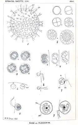 - Shaw, W.R. 1894. Pleodorina, a new genus of the Volvocineae. Botanical Gazette 19: 279–283. pl. 27. BHL Reference page.