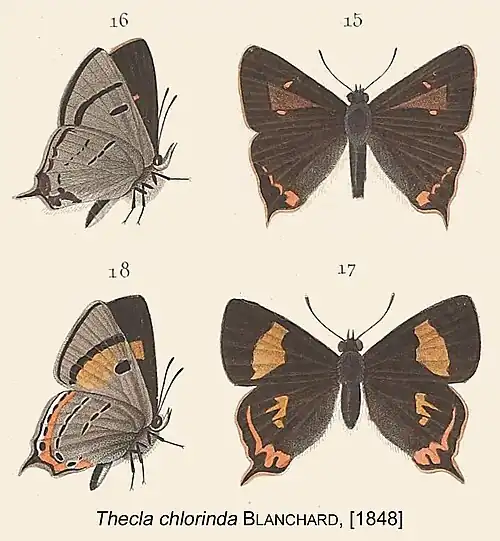 - Thecla chlorinda Blanchard, [1848]: 401, pl.3 figs 15-18.