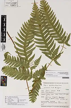- Brownsey, P.J., Braggins, J.E. & Perrie, L.R. 2020. Pteris carsei (Pteridaceae), a new endemic fern from New Zealand previously treated as P. comans G.Forst. New Zealand Journal of Botany 58(3): 214–222. DOI: 10.1080/0028825X.2019.1701503
