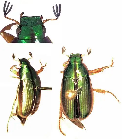 - Schoolmeesters, P. 2017. Scarabs: World Scarabaeidae Database (version Jul 2016). In: Roskov Y., Abucay L., Orrell T., Nicolson D., Bailly N., Kirk P., Bourgoin T., DeWalt R.E., Decock W., De Wever A., Nieukerken E. van, Zarucchi J., Penev L., eds. 2017. Species 2000 & ITIS Catalogue of Life, 30th January 2017. Digital resource at www.catalogueoflife.org. Species 2000: Naturalis, Leiden, the Netherlands. ISSN 2405-8858. Reference page. [accessed on March 1, 2017]