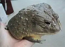 - Type species: Pyxicephalus adspersus Tschudi, 1838, by subsequent designation of Fitzinger (1843: 32).