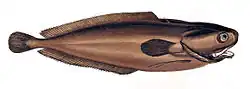 français: Grenouille de mer, petite loquette, poisson têtard, trident