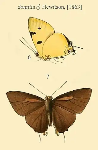 - Deudorix domitia Hewitson, [1863], Lycaenidae (1): 19, pl. 6, figs 6-7.