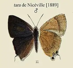 - Rapala tara de Nicéville, [1889]: 284, pl. 14, fig 11; D'Abrera, 1986: 628.