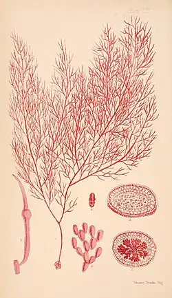 - Schmitz, F. 1889. Systematische Übersicht der bisher bekannten Gattungen der Florideen. Flora oder Allgemeine botanische Zeitung 72: 435–456, pl. XXI. BHL Reference page.