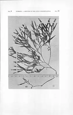 - Dawson, E.Y. 1941. A review of the genus Rhodymenia with descriptions of new species. Allan Hancock Pacific Expeditions. 3(8): 121–182, Plates 18-30. Online BHL Reference page. : 147–148, pl. 19, figs 12, 13, pl. 28, fig. 41