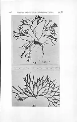 - Dawson, E.Y. 1941. A review of the genus Rhodymenia with descriptions of new species. Allan Hancock Pacific Expeditions. 3(8): 121–182, Plates 18-30. Online BHL Reference page. : 149, pl. 20: fig. 17; pl. 24: fig 35
