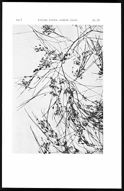 - Setchell, W.A. 1937. The Templeton Crocker Expedition of the California Academy of Sciences, 1932. No. 34. Report on the Sargassums. Proceedings of the California Academy of Science, series 4 22: 127–158, pls 28–33. BHL Reference page. : 143, pl. 28: figs 11, 12; pl. 32: figs 58, 59