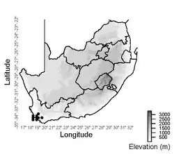 - Typus: South Africa, Western Cape Province, 3318 (Simonstown): Palmiet River Mouth, close to fresh water stream, (‒BD), 30 Jan 1947, Levyns 8150 Holotypus: BOL [BOL_139401]; Isotypus: BOL [BOL_139400], K [K000244905], PRE [PRE_0099629-0].