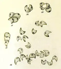 - Bohlin, K. 1897. Die Algen der ersten Regnell'schen Expedition. I. Protococcoideen. Bihang till Kongliga Svenska Vetenskaps-Akademiens Handlingar 23(Afd. III. No.7): 1–47, 2 pls. BHL Reference page. : 21, pl. I: figs 31–35
