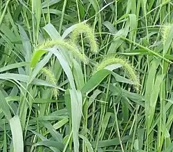English: giant foxtail, chinese foxtail, Chinese millet, giant bristlegrass, nodding foxtail, Japanese bristlegrass