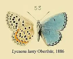 - Lycaena lanty Oberthür, 1886: 21, pl. 7, fig. 53; Seitz, 1912a: 306.
