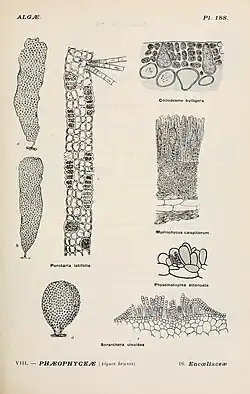 - Silberfeld, T., Rousseau, F. & Reviers, B. de 2014. An updated classification of brown algae (Ochrophyta, Phaeophyceae). Cryptogamie, Algologie 35(2): 117–156. DOI: 10.7872/crya.v35.iss2.2014.117 Reference page.