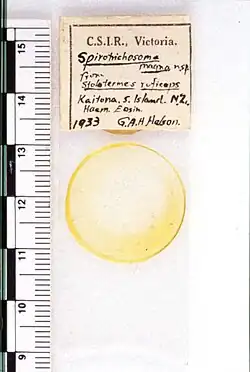 - Helson, G.H.A. 1935. Spirotrichosoma magna (n. sp.) from a New Zealand termite. Transactions and Proceedings of the Royal Society of New Zealand 64: 251–256. PDF