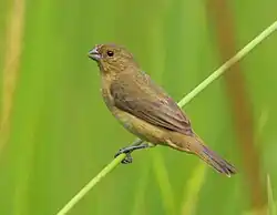 Sporophila corvina ophthalmica ♀, Mindo, Ecuador