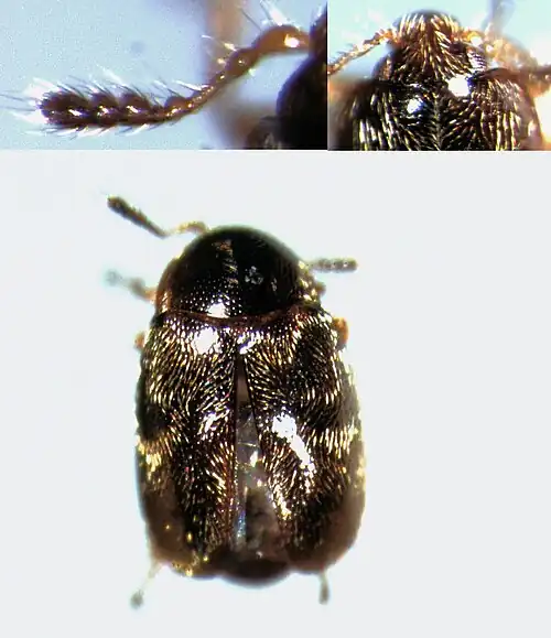 - Robertson, J.A., Ślipiński, A., Hiatt, K., Miller, K.B., Whiting, M.F. & McHugh, J.V. 2012 (Online) 2013 (Print). Molecules, morphology, and minute hooded beetles: a phylogenetic study with implications for the evolution and classification of Corylophidae (Coleoptera: Cucujoidea). Systematic Entomology 38(1): 209–232. DOI: 10.1111/j.1365-3113.2012.00655.x Reference page.