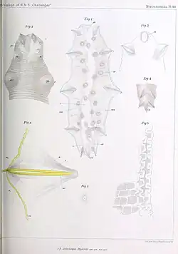 - von Graff, L. 1884. Report on the Myzostomida collected during the voyage of H.M.S. Challenger during the years 1873-1876. Reports of Science Research Voyage of H.M.S. Challenger. Zoology, 10(27): 1-82. BHL Reference page.