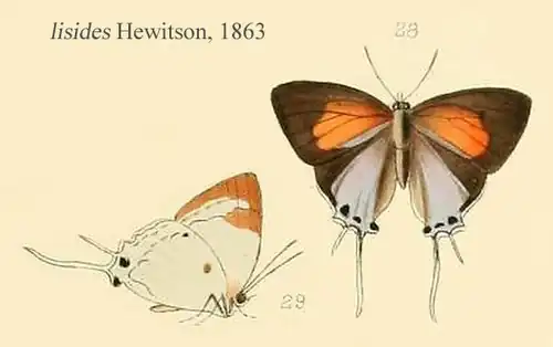 • Myrina lisides Hewitson, 1863: 33, pl. 14, figs 28-29.