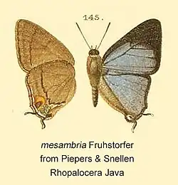 Tajuria mantra mesambria Fruhstorfer, 1912.