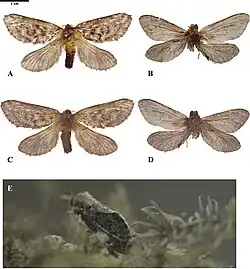 - Wang, Z-Y., Zhuang, H-L., Wang, M. & Pierce, N.E. 2019. Thitarodes shambalaensis sp. nov. (Lepidoptera, Hepialidae): a new host of the caterpillar fungus Ophiocordyceps sinensis supported by genome-wide SNP data. ZooKeys, 885: 89–113. DOI: 10.3897/zookeys.885.34638