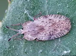 Genera: Abdastartus – Acanthocheila – Acanthotingis – Aconchus – Acysta – Aeipeplus – Aeithauma – Aeopelys – Aepycysta – Aepykorys – Aframixia – Afrochila – Afrotingis – Agachila – Agaotingis – Aglotingis – Agramma – Aidoneus – Alinotingis – Alloiothucha – Allotingis – Alveotingis – †Amberobyrsa – Amblystira – Ambotingis – Ambycysta – Ammianus – Angolotingis – Angolusa – Aphelotingis – Aristobyrsa – Arushia – Asperotingis – Atheas – Aulotingis – Australotingis – Axiokersos – Baeochila – Baeotingis – Baichila – Bako – Banahaona – Belenus – Berotingis – Birabena – Bunia – Bunotingis – Cadmilos – Caffrocysta – Callithrincus – Caloloma – Calotingis – Campylosteira – Campylotingis – Cantinona – Carvalhotingis – Catoplatus – Celantia – Cephalidiosus – Ceratinoderma – Ceratotingis – Cervantestingis – Cetiothucha – †Chorotingioites – Chorotingis – Cochlochila – Codotingis – Coleopterodes – Collinutius – Compseuta – Conchotingis – Congochila – Copium – Corinthus – Corycera – Corythaica – Corythauma – Corythotingis – Corythucha – Cottothucha – Cromerus – Cysteochila – Dasytingis – Dichocysta – Diconocoris – Dicrotingis – Dictyla – Dictyotingis – Dicysta – Diplocysta – Dulinius – Dyspharsa – Elasmognathus – Elasmotropis – Engynoma – Engyotingis – Eotingis – Epimixia – Eritingis – Esocampylia – Eteoneus – Euahanes – Euaulana – Eurypharsa – Froggattia – Furcilliger – Gabirobius – Galeatus – Galotingis – Gargaphia – Gitava – Gyalotingis – Gymnotingis – Habrochila – Haedacanthus – Haedus – Hebetingis – Hegesidemus – Heissiella – Henrikus – Hesperotingis – Holophygdon – Hovatlas – Hurdchila – Hyalochiton – Hybopharsa – Hypsipyrgias – Hypsotingis – Idiocysta – Ildefonsus – Inoma – Inonemia – Ischnotingis – Ittolemma – Kapiriella – Larotingis – Lasiacantha – Latitingis – Lemurichila – Leptobyrsa – Leptocysta – Leptodictya – Leptopharsa – Leptoptyx – Leptoypha – Lepturga – Liotingis – Litadea – Longiscutella – Lullius – Machairotingis – Macrocorytha – Macrotingis – Madangocoris – Mafa – Magmara – Malagasotingis – Malandiola – Mecopharsa – Megalocysta – Melanorhopala – Metasalis – Monosteira – Mummius – Naitingis – Naochila – Neoplerochila – Neotingis – Nesocypselas – Nesocysta – Nesotingis – Nethersia – Niborskiana – Nobarnus – Nyctotingis – †Oblongomorpha – Octacysta – Oedotingis – Oeocharis – Ogygotingis – Olastrida – Omoplax – Oncochila – Oncophysa – Onymochila – Orotingis – Ottoicus – Pachycysta – Palauella – Paracopium – Parada – Paraleptoypha – Paraperissonemia – Paseala – Penottus – Perbrinckea – Perissonemia – Phaenotropis – Phaeochila – Phymacysta – Physatocheila – Placotingis – Planibyrsa – Platytingis – Plerochila – Pleseobyrsa – Pliobyrsa – Pogonostyla – Pontanus – Pseudacysta – Pseudohegesidemus – Pseudurentius – Psilobyrsa – Radinacantha – Raunotingis – Sabestena – Sanazarius – Scymnotingis – Sinuessa – Sisperonemia – Sphaerista – Sphaerocysta – Stenocysta – Stephanitis – Stragulotingis – Stymnonotus – Swaustraltingis – Tadelia – Taichila – Tanybyrsa – Tanytingis – Teleonemia – Therotingis – Tigava – Tigavaria – Tingicesa – Tingis – Trachypeplus – Tropicotingis – Uhlerites – Ulocysta – Ulonemia – Ulotingis – Urentius – Vatiga – Xenotingis – Xynotingis – Ypsotingis – Zatingis – Zeiratingis – Zelotingis – Zorotingis