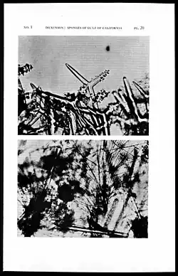 - Dickinson, M.G. 1945. Sponges of the Gulf of California. Allan Hancock Pacific Expeditions. Los Angeles, Calif.: University of Southern California Press. 11(1): 1–55; pls. 1–97. Online BHL Reference page.