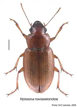 - Type species: Triplosarus fulvescens Bates, 1874 [=Harpalus novaezelandiae Laporte de Castelnau, 1867], by monotypy.