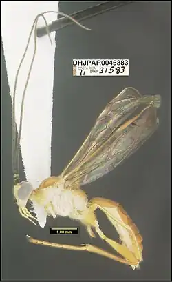 - Sharkey, M.J., Janzen, D.H., Hallwachs, W., Chapman, E.G., Smith, M.A., Dapkey, T., Brown, A., Ratnasingham, S., Naik, S., Manjunath, R., Perez, K., Miltom, M., Hebert, P., Shaw, S.R., Kittel, R.N., Solis, M.A., Metz, M.A., Goldstein, P.Z., Brown, J.W., Quicke, D.L.J., van Achterberg, C., Brown, B.V. & Burns, J.M. 2021. Minimalist revision and description of 403 new species in 11 subfamilies of Costa Rican braconid parasitoid wasps, including host records for 219 species. ZooKeys 1013: 1–665. DOI: 10.3897/zookeys.1013.55600.