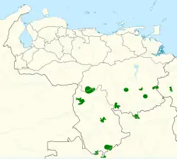 - Type locality: Merumé Mountains, Roraima, 3500~5000 ft. (ca. 1070~1640 m), Guiana.