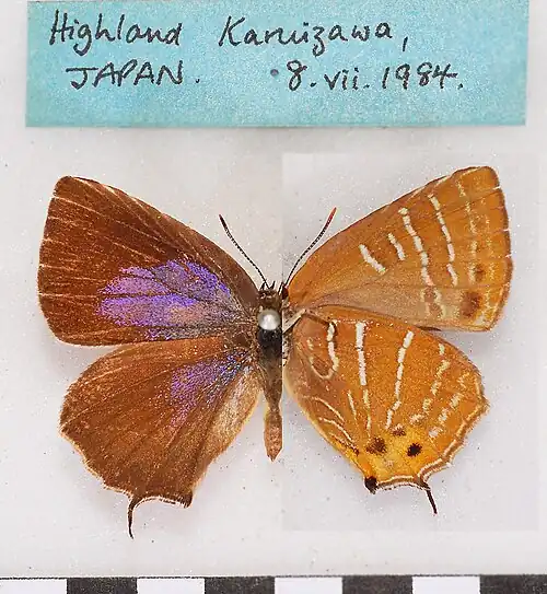 - Sibatani, A. & Ito, S., 1942. Beitrag zur Systematik der Theclinae im Kaiserreich Japan unter besonderer Berücksichtigung der sogenannten Gattung Zephyrus (Lepidoptera, Lycaenidae). Tenthredo (3): 299-334. Reference page.