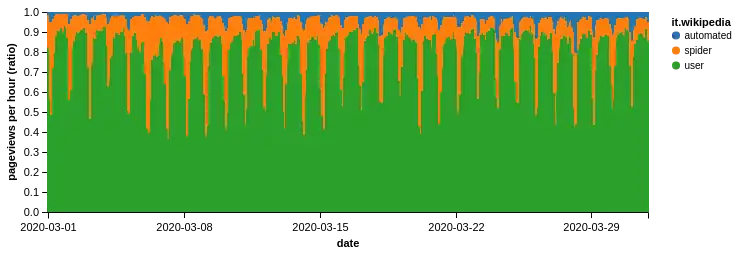 automatedis relatively regular, similar to the global one (see graphs below). - On smaller projects however the amount of so called automated-traffic is a lot less regular, with spikes or plateau periods. It is very interesting to notice that the removal of the
