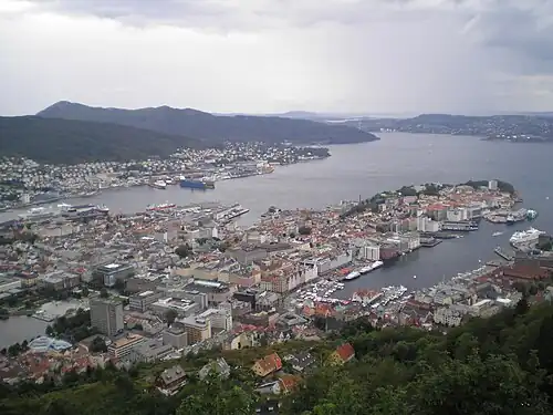 Bergen este un port și este localizat pe coasta de vest a Norvegiei.