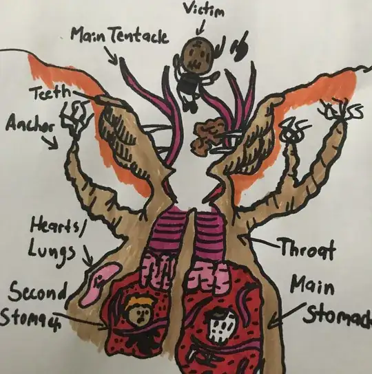 Prey falls into the Tayan's throat. A muscular flap separates prey into one of two stomachs. Larger prey goes into the main stomach, smaller prey goes into the secondary stomach. Once inside their respective digestive chamber, prey is held back by tentacles to the Tayan’s stomach walls, were needle like tendrils inject prey with a paralyzing neurotoxin, that also causes intense pain. Prey wearing synthetic clothing can not be injected with neurotoxin.