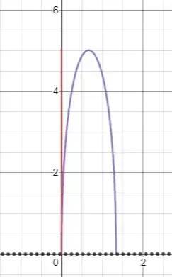 First things first, what happens if you lob a ball directly upward at about $10 m/s$? Well, in a normal gravitational field, that's easy-- it should go straight up and down. However, in our cylinder world, the Coriolis force will push it in the y' direction. It still goes straight up and down in the x'z' plane, so we will omit that graph because it's boring. You can see that the ball moves about a meter in the y' direction, which probably wouldn't be very noticeable since it's hard to throw something directly upwards anyway.