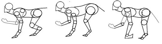 That's why I made a set of schemes about how should be the arrangement between the two pairs of forelimbs, one pair as arms and the other as legs.