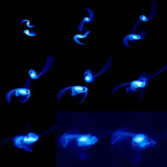 For anyone who wants to see a cool simulation of a galaxy, merger, I can recommend a neat little applet): Galaxy Crash JavaLab.1 Two more good sites with a bunch of different simulations are the GALMER website and this one (which turns out to have Samuel's simulation).