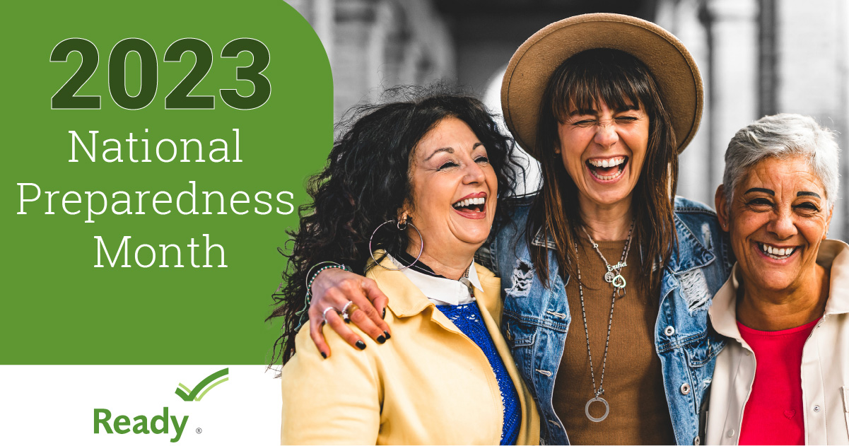 Social media graphics for the 2023 National Preparedness Month (NPM) in English and Spanish.