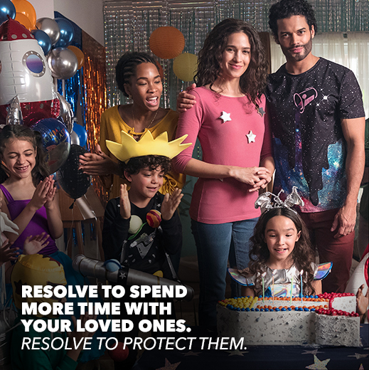 A family gather around a birthday cake. Resolve to spend more time with your loved ones. Resolve to protect them.